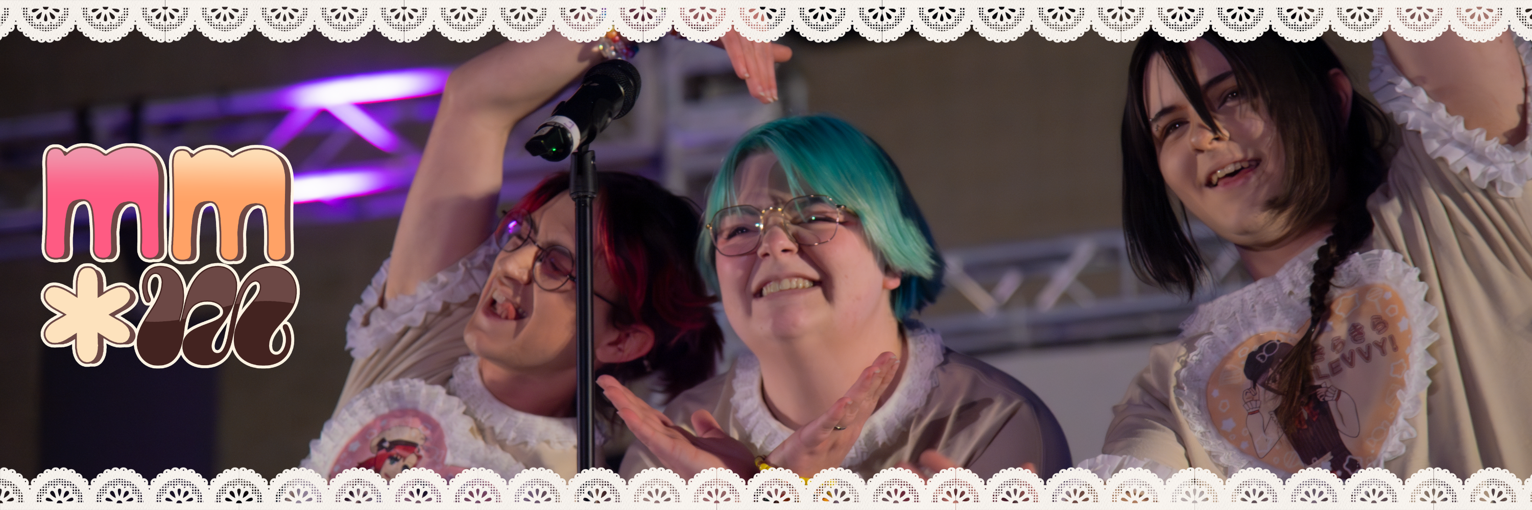moshimoshi * mousse is a kaigai idol boy group with three members: Levvy, Ronan, and Neon, based in the southern United States. Though they have a sweet image, they hope to show their complex flavor profiles through performance and aim to take you on a nostalgic journey through the y2k inspired Internet Cafe of their dreams.